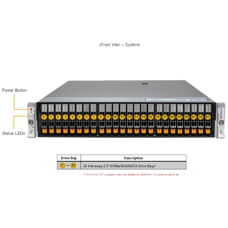 24個熱插拔2.5"NVMe硬盤位