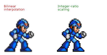 畫(huà)面縮放的問(wèn)題對(duì)部分游戲來(lái)說(shuō)可能沒(méi)多大影響,但對(duì)一些像素游戲來(lái)說(shuō),有沒(méi)有整數(shù)縮放差異是很大的,如上圖所示,整數(shù)縮放的畫(huà)面更符合像素游戲的精髓,畫(huà)質(zhì)更高,而差值算法的更模糊了。