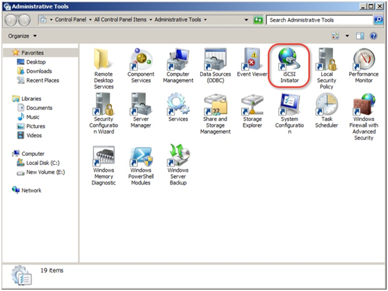 在 Windows 上打開 iSCSI 啟動器(在控制面板 > 管理工具中)。